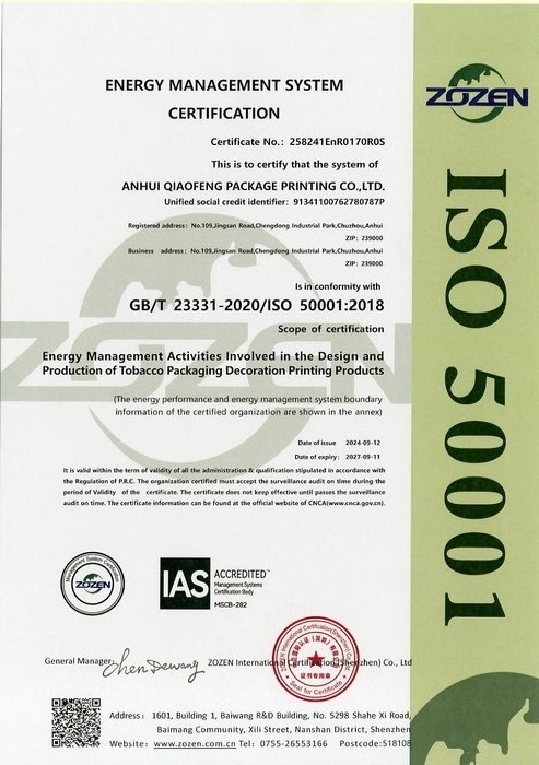 The company was awarded the energy management system certification certificate on September 12, 2024. |