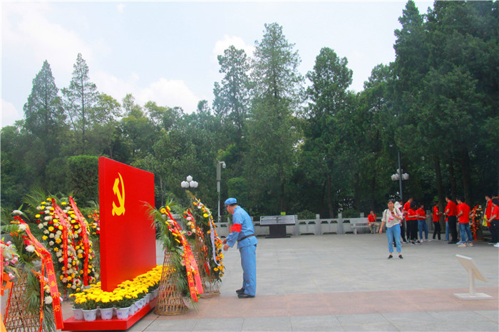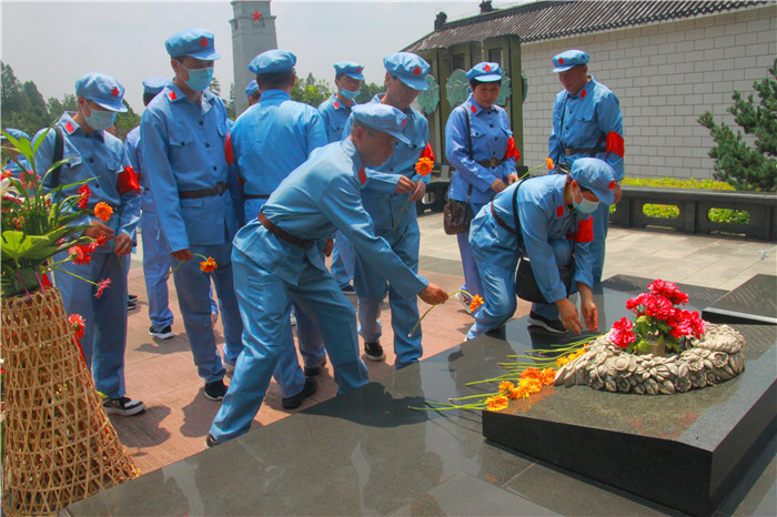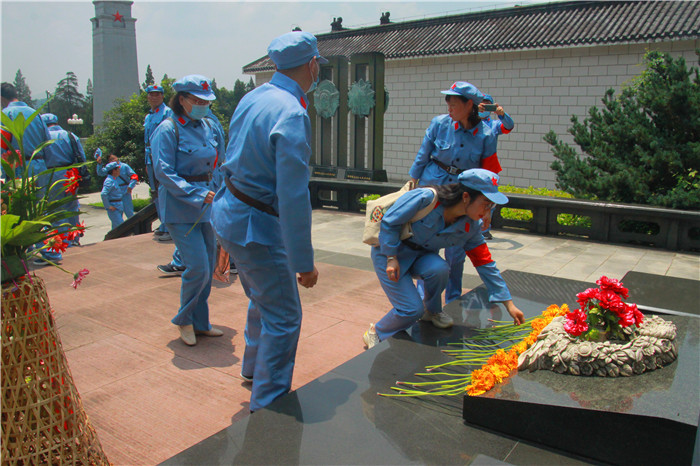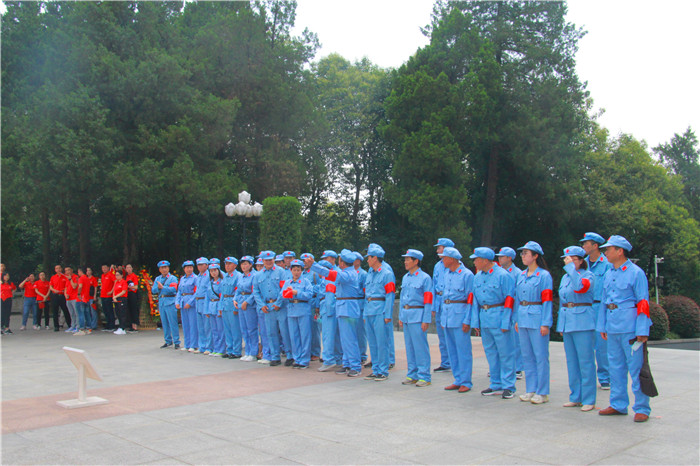 结束了5个多小时的车程后,大家终于抵达了此行的目的地——金寨。金寨,地处大别山腹地,被誉为“红军的摇篮、将军的故乡”。本次活动的第一站,便是参观红军广场和革命烈士纪念馆。为了让这次参观活动更具仪式感,陈书记特意租来了红军军装。大家换好军装、手持鲜花,满怀敬仰和虔诚,向烈士陵园内的星火燎原纪念碑走去。到了纪念碑前,所有党员整齐列队,由陈小荣书记出列,代表侨丰公司向逝去的革命先烈们敬献花篮。并带领大家在纪念碑前庄严宣誓,“我志愿加入中国共产党••••••永不叛党”,重温这一句句神圣的入党誓词,铿锵有力的声音鸣响在每一位党员的心头。